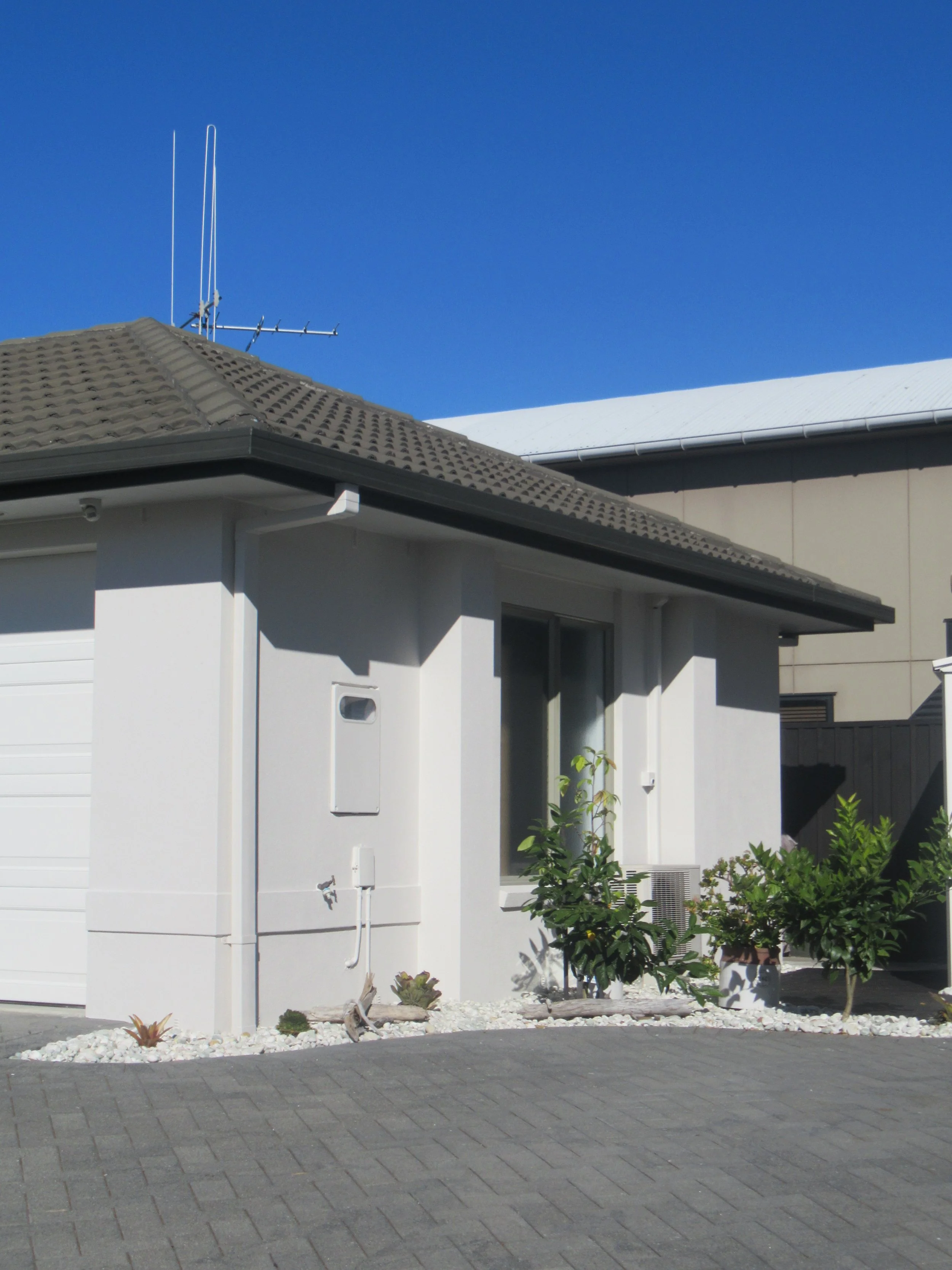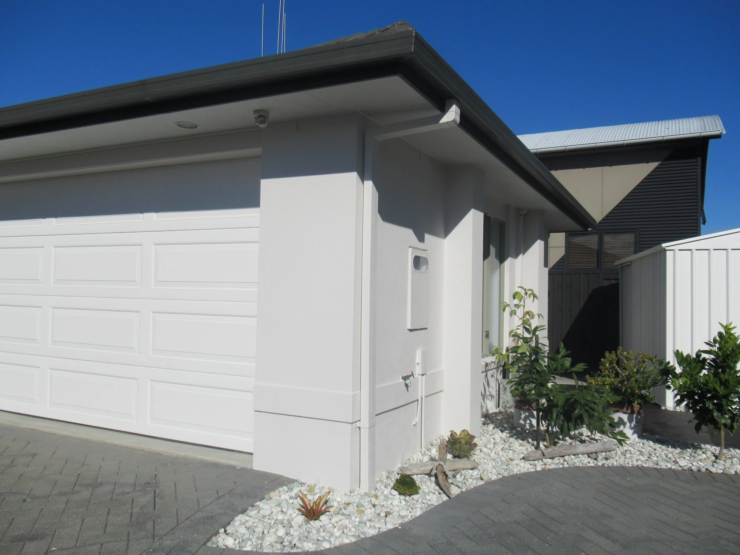 Home renovation with plastering and painting. We transformed this residential property by replacing the brick wall with smooth plaster and a fresh paint finish, giving the home a clean, modern look.